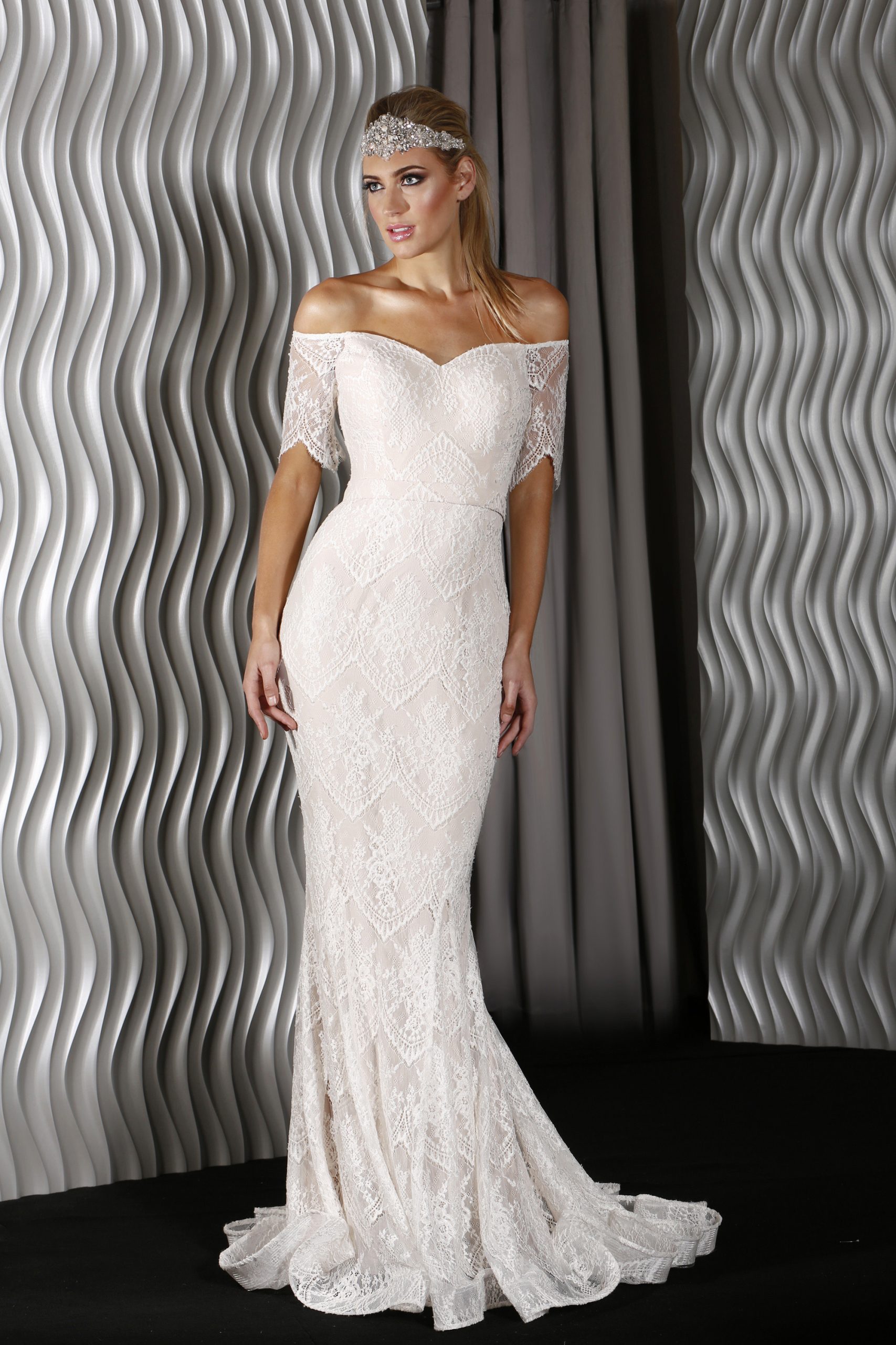 PLEASE NOTE: THIS GOWN CAN BE REORDERED IN OTHER SIZES AND COLOURS UNDER THE STYLE NUMBER JX5054. PLEASE CONTACT US IF YOU WOULD LIKE TO ORDER A DIFFERENT SIZE OR GO TO https://graftonbridal.com.au/product/elegant-lace-jadore-gown-jx5054/