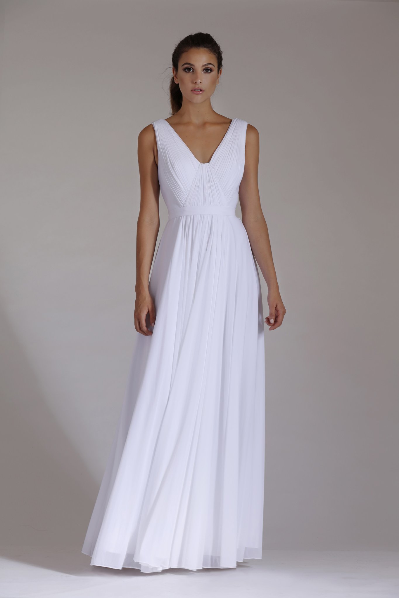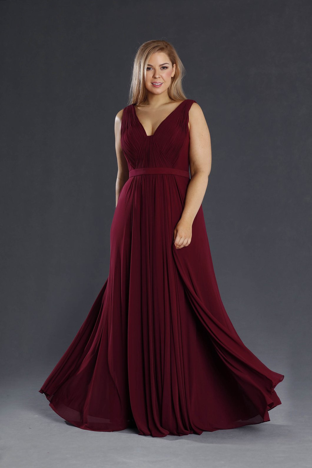 Romantic chiffon (lycra mesh) floor length gown with ruching on the bodice from Jadore.  Beautiful circle skirt with soft gathers in center front make this a very flattering gown.  Can be ordered in other colours for 14 week delivery. Please contact us if you would like this gown in other sizes or colours.