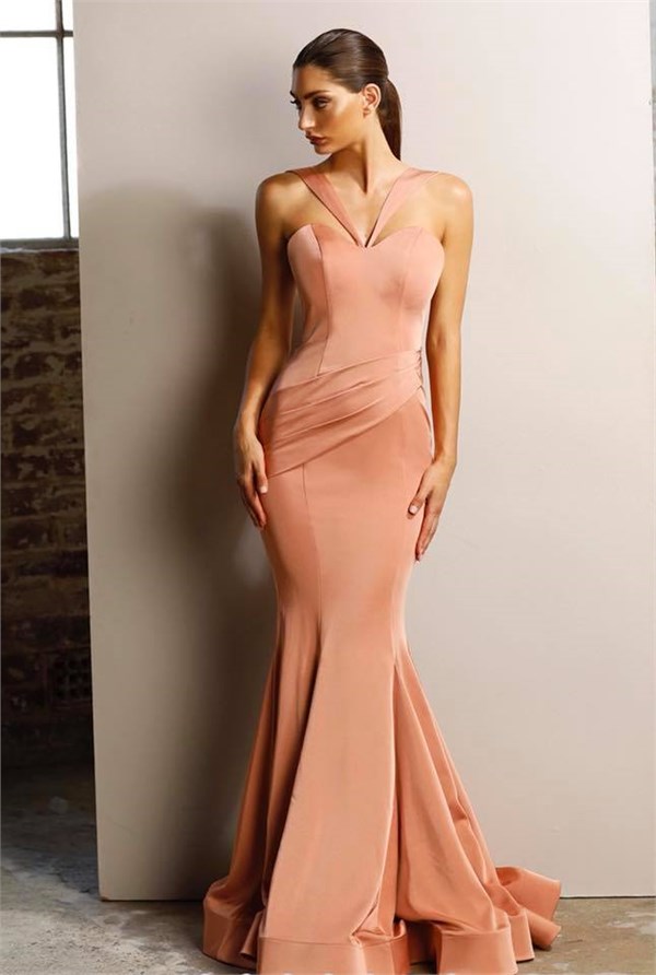 JX1049, An elegant full length gown in a luxurious stretch satin by Jadore. Featuring a sweetheart neckline with wide v straps radiating from the center neckline. The elegant fit and flare silhouette also features an asymmetrical soft drape across the lower waist. The gown is fully lined and a contains a stiffened hemline to accentuate the silhouette.